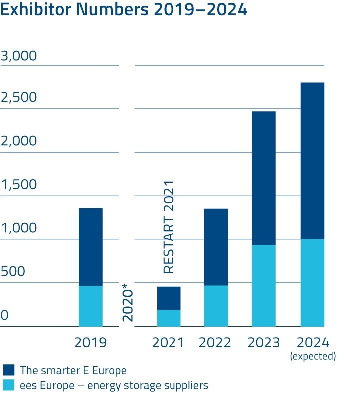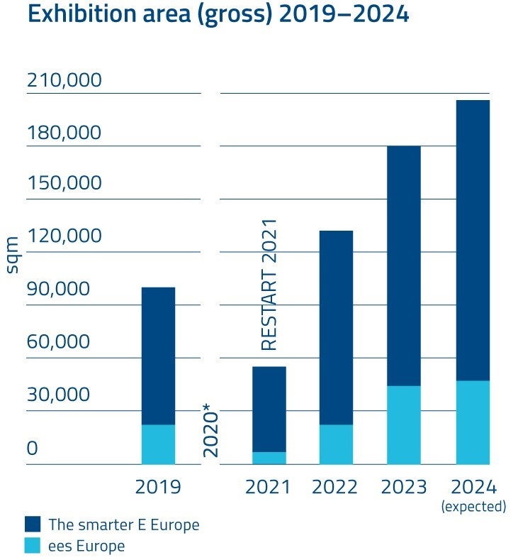 The exhibition date planned for 2021 is postponed from June to July and then has to be canceled altogether. But the organizers of The smarter E Europe do not give up and set a new event date for October. The companies that have the courage to participate as exhibitors are richly rewarded: At The smarter E Europe Restart in October 2021, the number of exhibitors is just a third, and the number of visitors is just over half of the number before the pandemic, but they do excellent business after the months-long forced break.