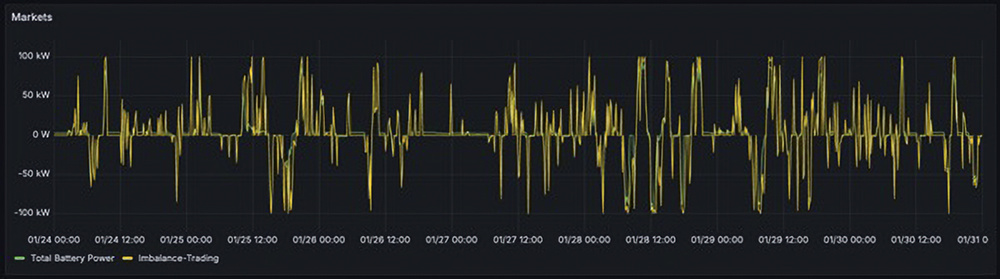 At the same time, a trader is marketing the 30 battery storage devices on the Dutch imbalance market, where prices change every 15 minutes. The storage devices can store excess electricity from the grid at short notice and feed it back in when demand is high – supporting grid stability.